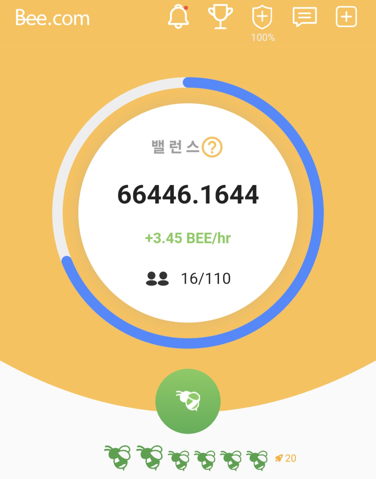 앱에 하루 한 번 로그인하여 채굴을 활성화하면 자동으로 Bee가 채굴됩니다.