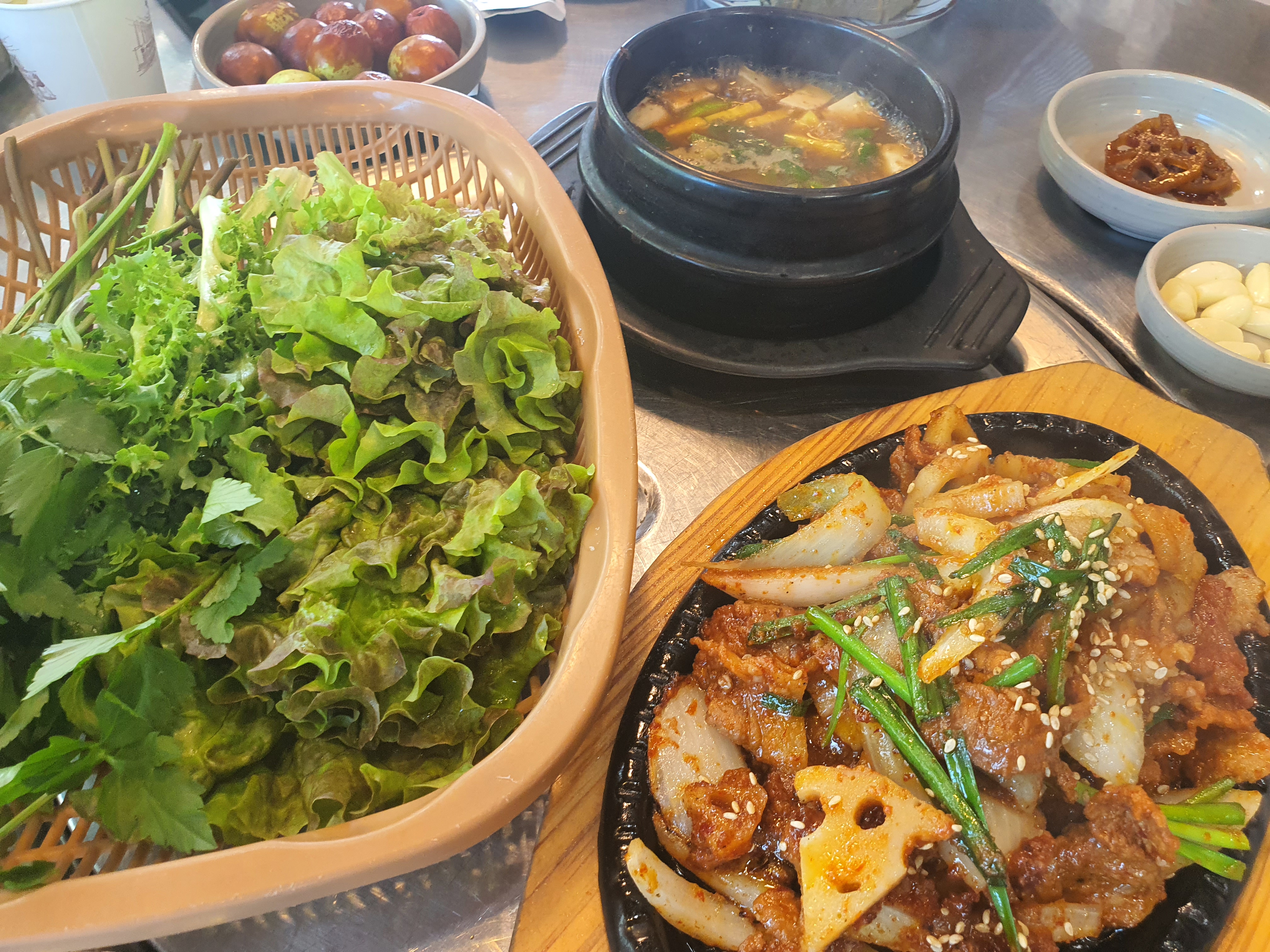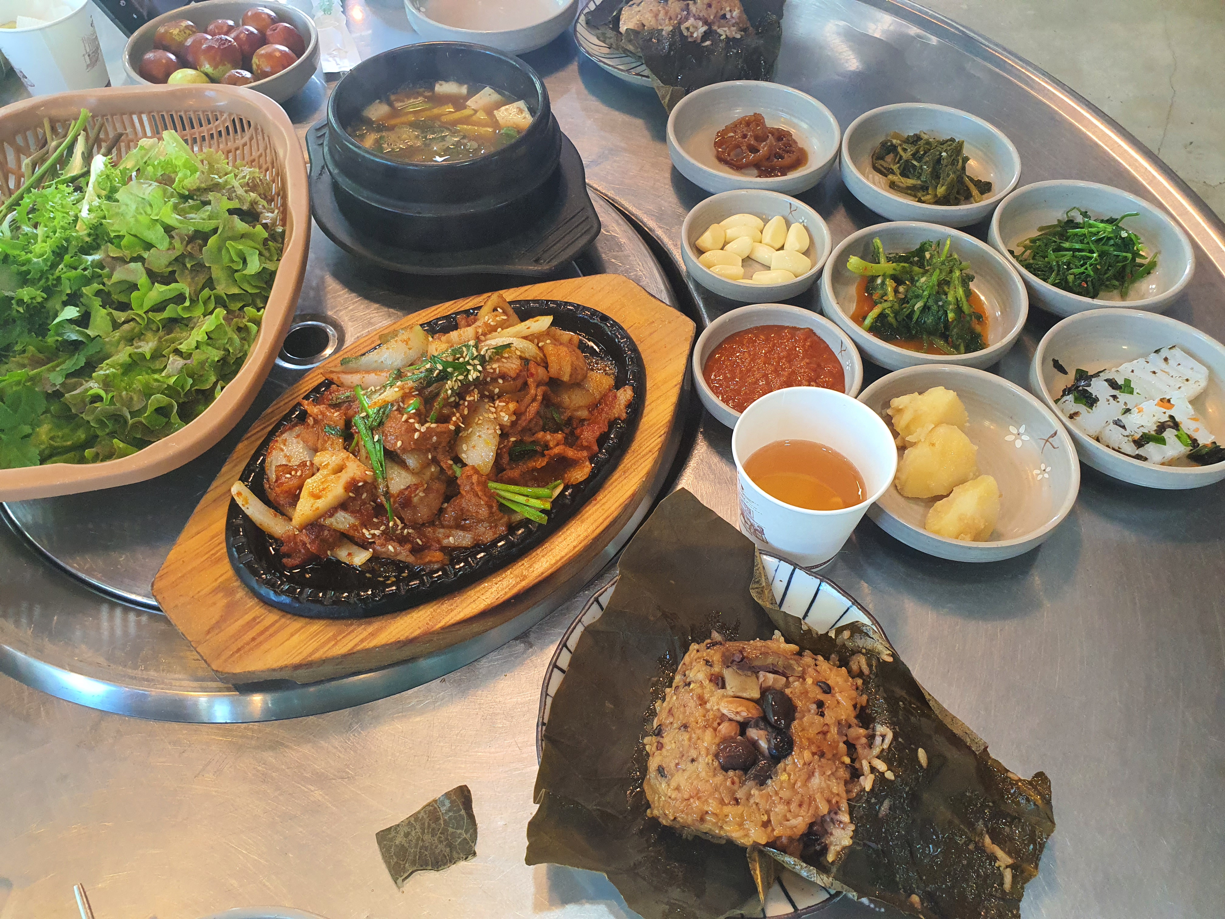 윤기가 자르르 흐르는 연제육쌈과 연잎밥 향이 좋고 한입 먹으니 더 맛있는 제육볶음이었습니다