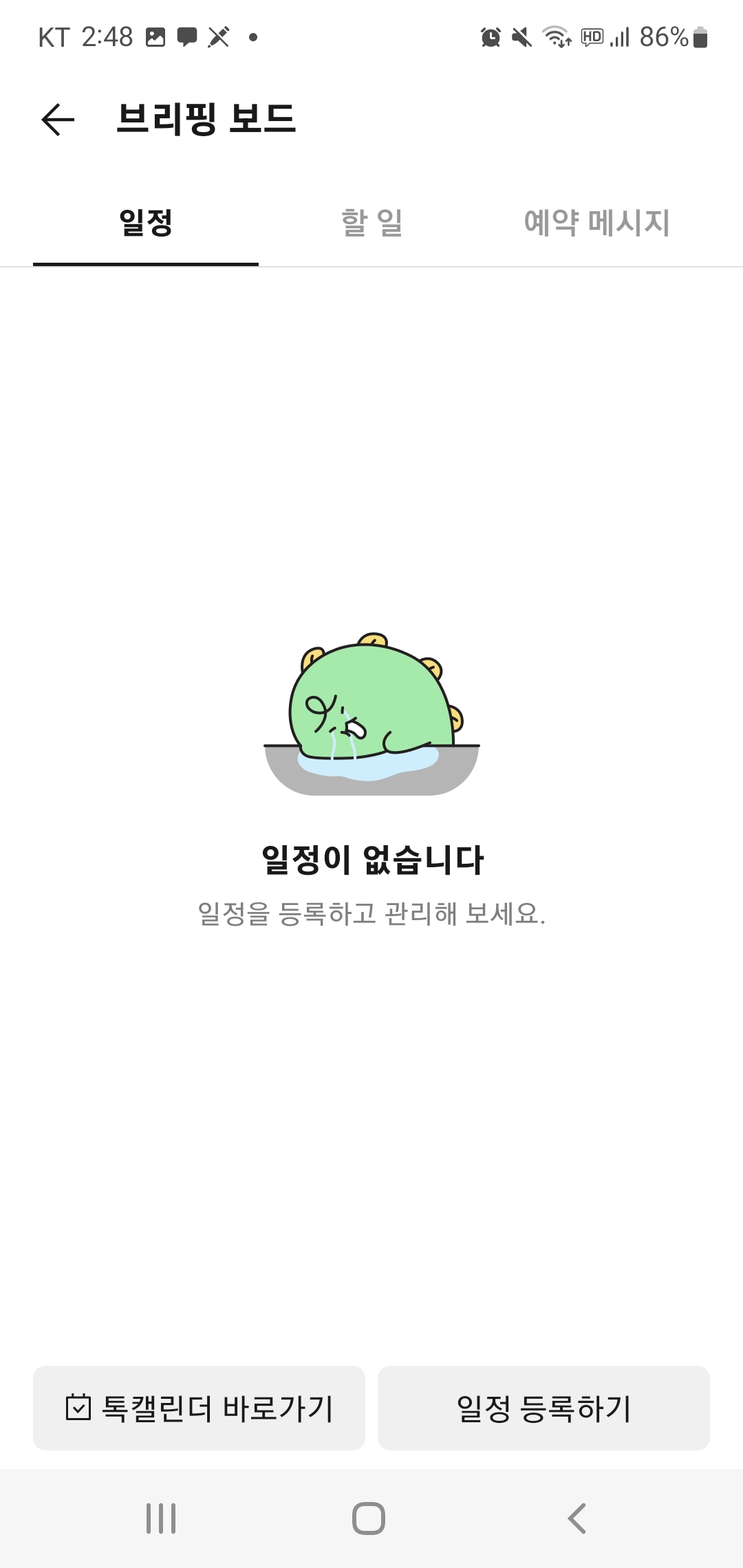 첫 화면이 일정이 없습니다라고 나오는데 당황할 필요 없습니다 톡 캘린더 바로가기 일정 등록하기 클릭하신 후