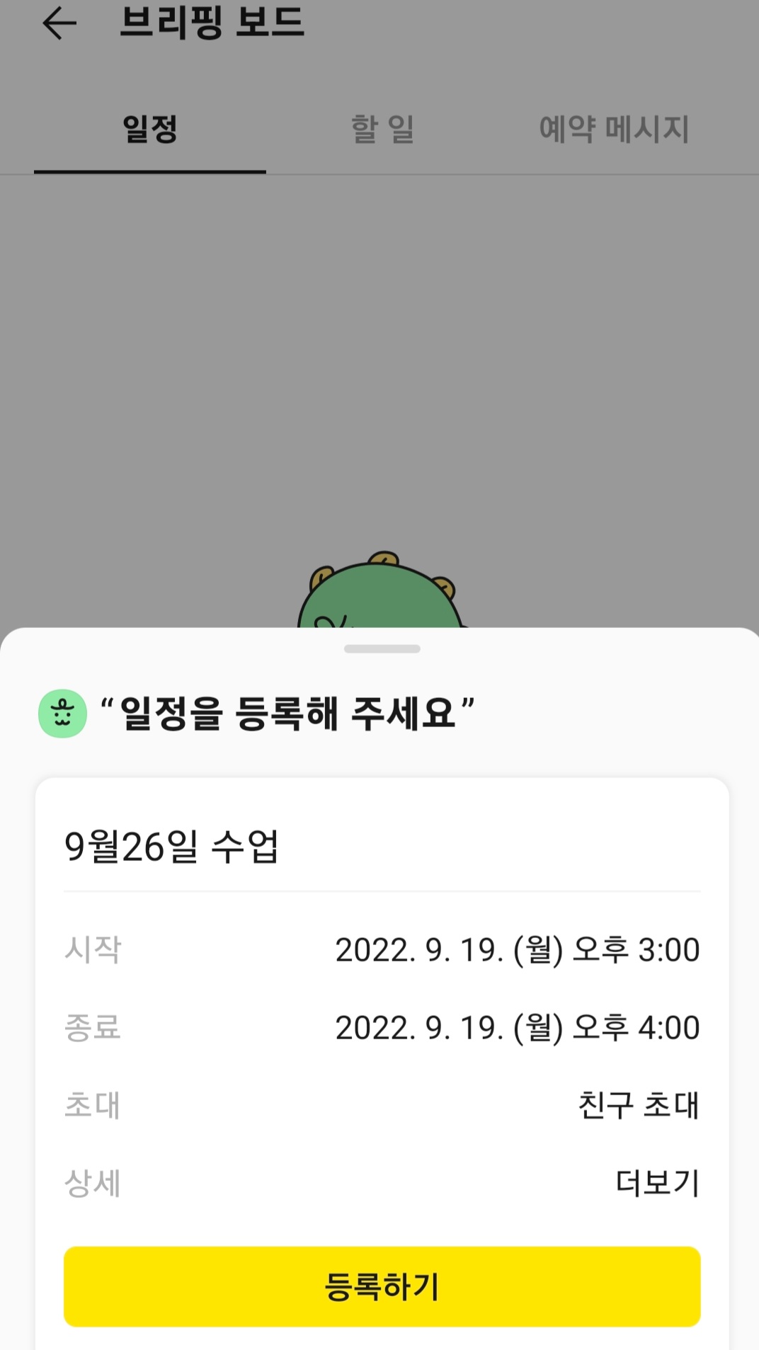 기간은 매일 반복으로 지정을 했는데 카카오뷰 캘린더 클릭 후 일정 기한 반복 스케줄에 맞춰서 입력하시면 되겠습니다