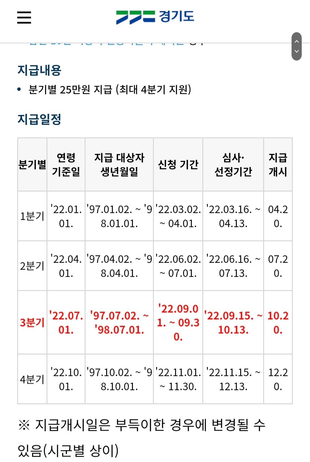 2002년 경기도 청년 기본소득 지원금 3분기 신청