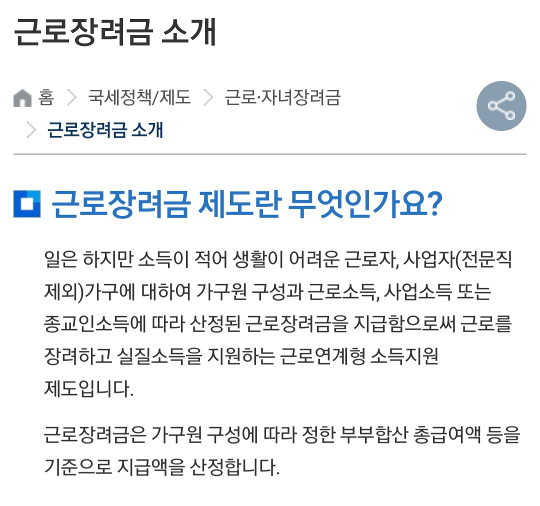 근로 장려금 제도란???
