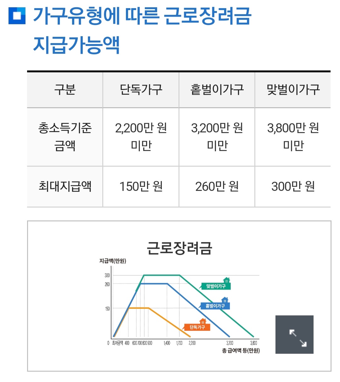 가구 유형에 따른 근로장녀금 지급 가능액